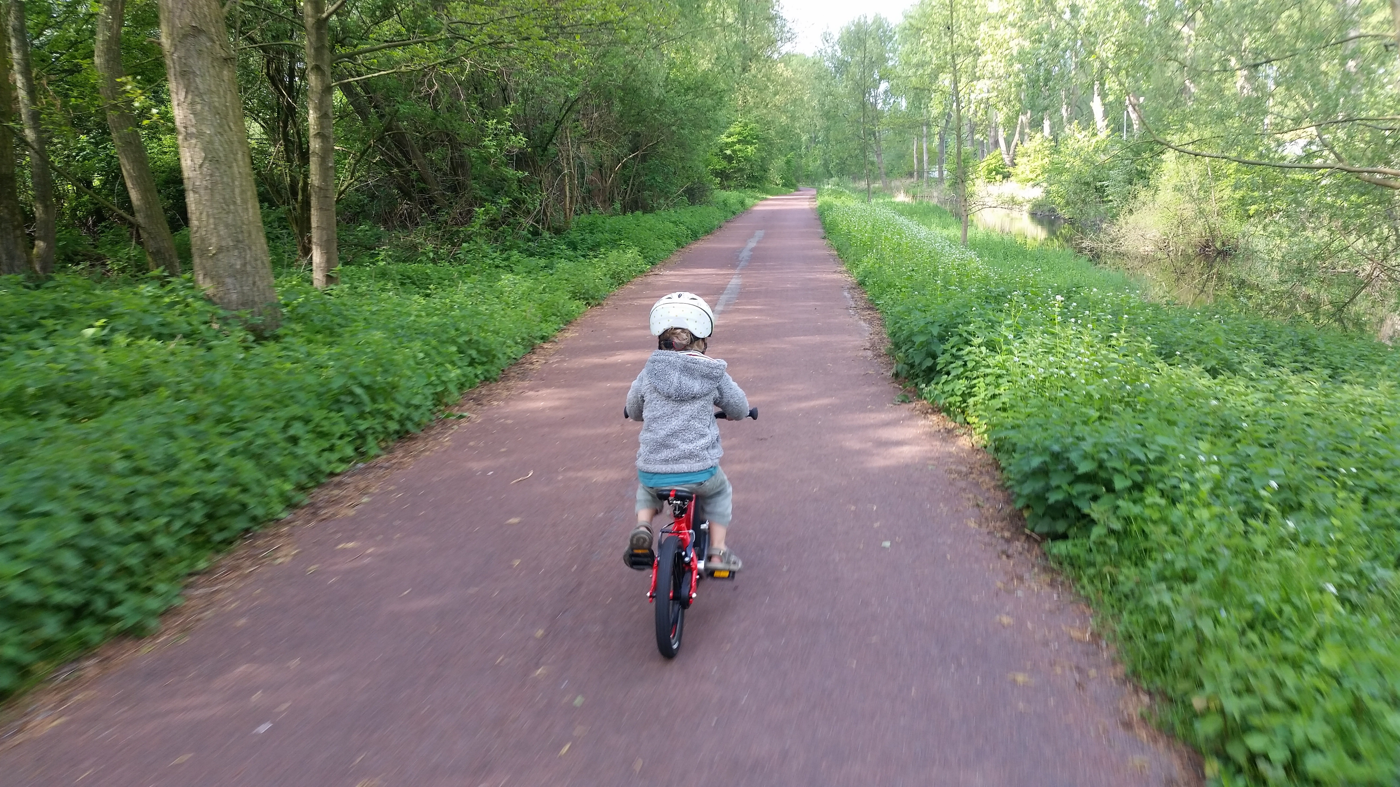 The first section out of Amsterdam is lovely, through quiet parkland with few people that can be disturbed by our son’s issues with cycling on the ‘right’ side of the path..